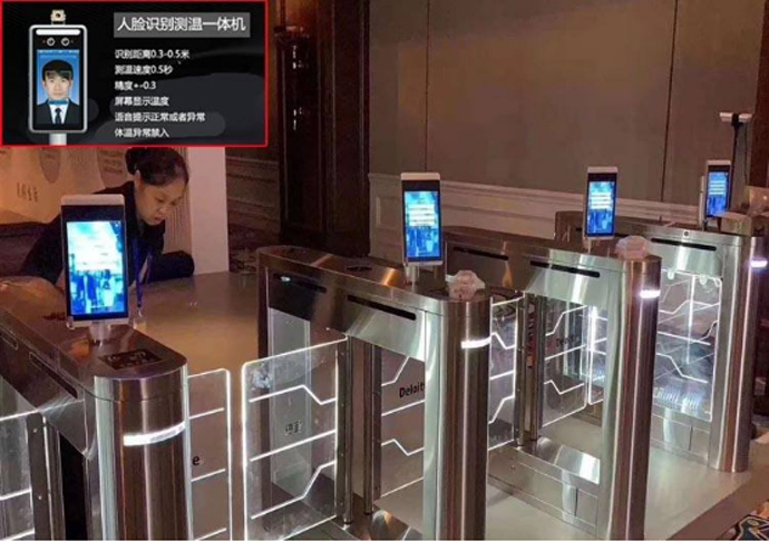 在不需要接觸的情況下,就可以實現人臉數據采集、身份信息核驗、熱成像體溫監測等功能,甚至在不需要摘口罩的情況下,通過視網膜識別來辨別身份,不僅可以知道過往的通行記錄,還可以知道是否接觸過疑似病例,遇到體溫異常者會發出語音警報。廣泛應用于社區、酒店、寫字樓、商場等人流量較大的地方。