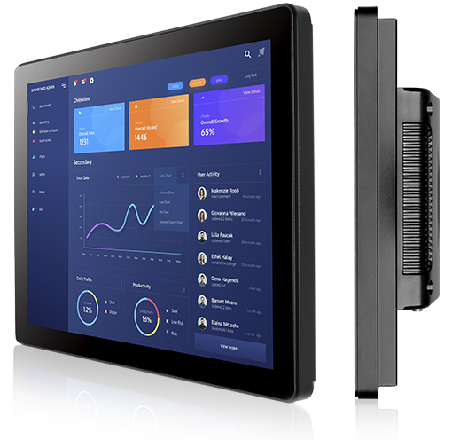 2.5mm矮階窄邊面板設計,專為機柜類設備配套打造,無縫內嵌式安裝,面板齊平于機柜,和諧規整,彰顯場景科技美感,搭載強固高透玻璃蓋板,支持電阻觸摸/10點電容觸摸和非觸摸操作,高清還原,觸控流暢,耐磨耐沖擊:支持LVDS或EDP屏接口類型,具備VGA\HDMIDVI自動識別信號: 寬溫適應,高效散熱,支持-10°C~60°C寬溫穩定運行。廣泛應用于工業智能機柜、商業自助機柜、電力/網絡機柜、智慧城市服務類等設備。